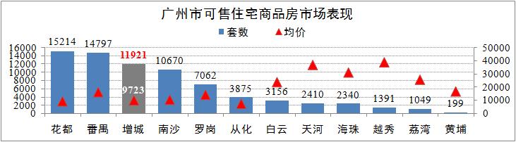 截至3月22日,廣州新建可售住宅商品房共有74084套,全市新建可售住宅商品房均價為14100元/平方米,環比回落3.5%。其中花都、番禺、增城及南沙的房源合計占比71%,增城共有可售房源11921套,均價為9723元/平方米,環比回落2.4%。相對于全國房地產市場表現,統計期間廣州市房地產市場表現相對穩定。