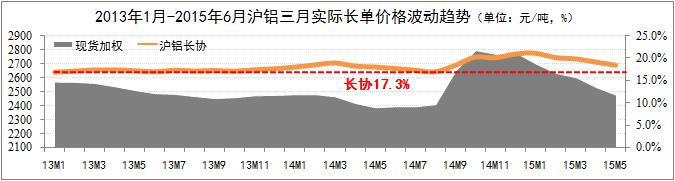 滬鋁三月長協(xié)比例回歸理性。自從2014年第三季度滬鋁三月長協(xié)比例飆升至20.3%以來,國產(chǎn)氧化鋁價格已實質(zhì)偏離市場正常的發(fā)展軌道。數(shù)據(jù)顯示,從2014年10月開始,滬鋁三月長協(xié)比例出現(xiàn)不同程度的回落,目前長協(xié)比例已下調(diào)至18.5%,但仍然高于17.3%的基礎(chǔ)水平。綜合考慮生產(chǎn)原材料成本及經(jīng)濟(jì)政策等因素,我們認(rèn)為滬鋁三月長協(xié)比例將會穩(wěn)定在18.0%-18.5%的彈性區(qū)間。