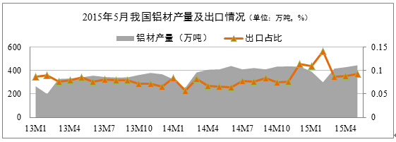 鋁材出口占比維持高位。統計數據顯示,6月份國內鋁材出口量為41萬噸,環比增長7.89%,同比增長了40.74%,占國內鋁材產量的9.23%,總體出口占比水平有了較為明顯的提升。從政策操作層面上看,國內最新關稅優惠政策是促使統計期間鋁材出口量顯著增長的重要因素。