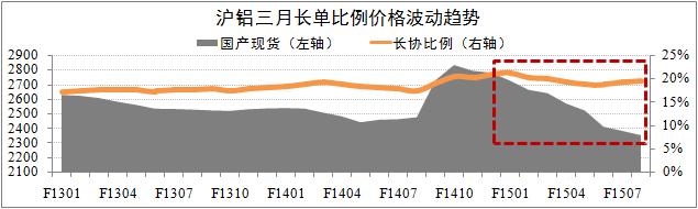 滬鋁三月長協比例輕微回升。報告期內,滬鋁三月長協比例進一步回落至19.4%,但環比小幅上升0.3個百分點,月化波動區間為19.1%-19.4%。波動幅度方面,滬鋁三月結算價月化下滑3.5%,氧化鋁月度均價下滑2.2%,長協與現貨之間的差距繼續拉大,在全球大宗商品價格整體下浮的環境下,將會對氧化鋁價格復蘇造成較大的壓力。