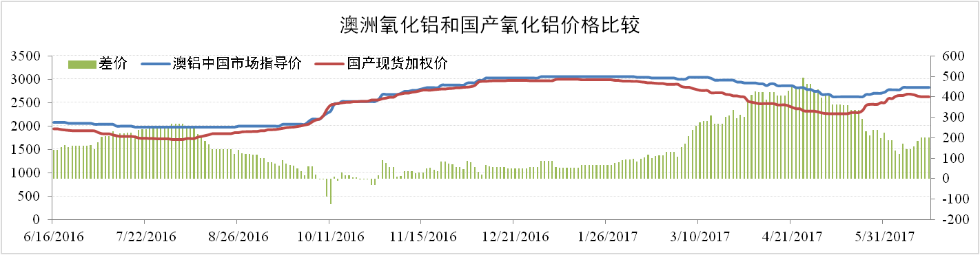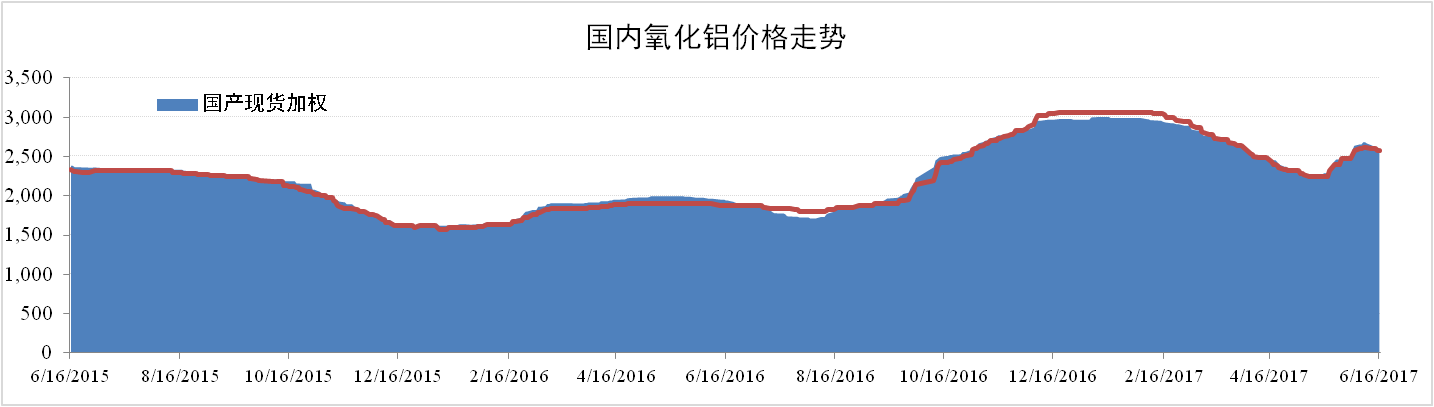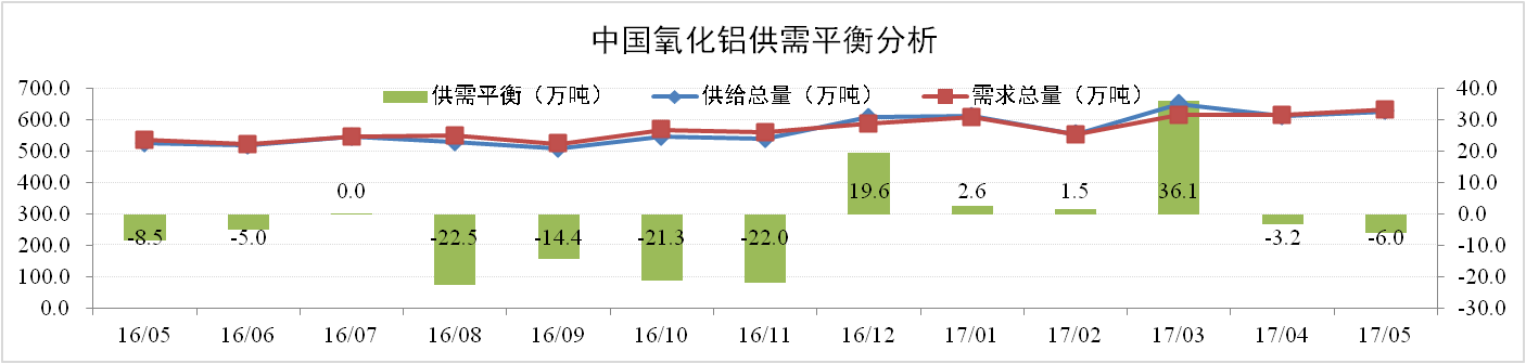 分析認為:由于嚴厲的環保政策影響以及氧化鋁價格下跌影響,氧化鋁供給開始趨緩,部分氧化鋁企業選擇減產,氧化鋁日均產量出現一定幅度下降。預計6月份部分氧化鋁企業會有所提產,氧化鋁供應會出現輕度過剩。