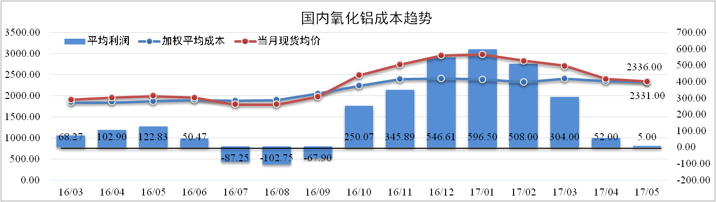 分析認為:6月份,國內煤炭和片堿價格有所下降,但鋁土礦供應受國內環保督查影響將出現緊缺局面。預計氧化鋁成本將穩中有所下降。