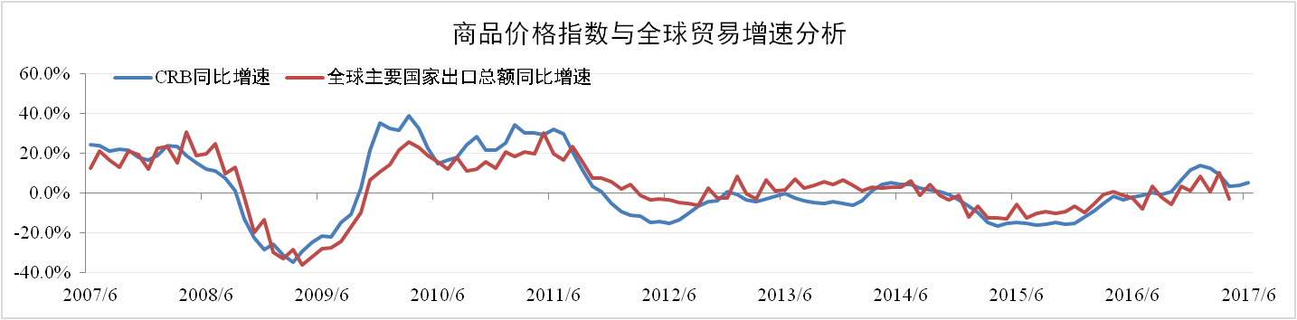 分析認為:本次全球貿易增速的提升更多的取決于商品價格增速。歷史數據表明商品價格指數總體上領先全球貿易增速約一個季度。目前商品價格增速已回落至低位企穩,表明全球商品價格已經階段性見頂,全球貿易回暖增速或回落。