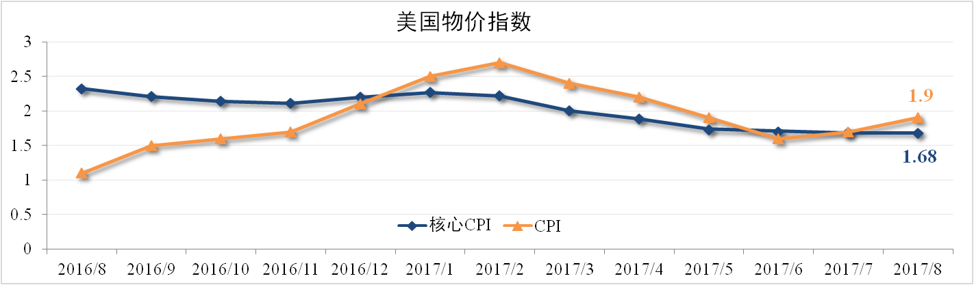 8月美國CPI為1.9%,核心CPI1.68%,雙雙超出市場預期。受颶風哈維影響,墨西哥灣地區(qū)煉油廠被迫停產(chǎn),颶風沿線地區(qū)600多萬人口遷移,帶動沿途汽油價格與房屋租金上漲,成為此次支撐CPI上漲的主要原因。