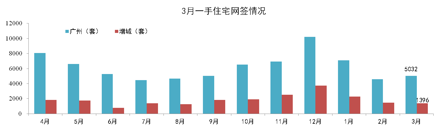 3月,廣州一手住宅網簽量成交4,570套,環(huán)比下跌35.76%。其中增城市場3月一手住宅網簽成交1,396套,環(huán)比下跌3.8%。