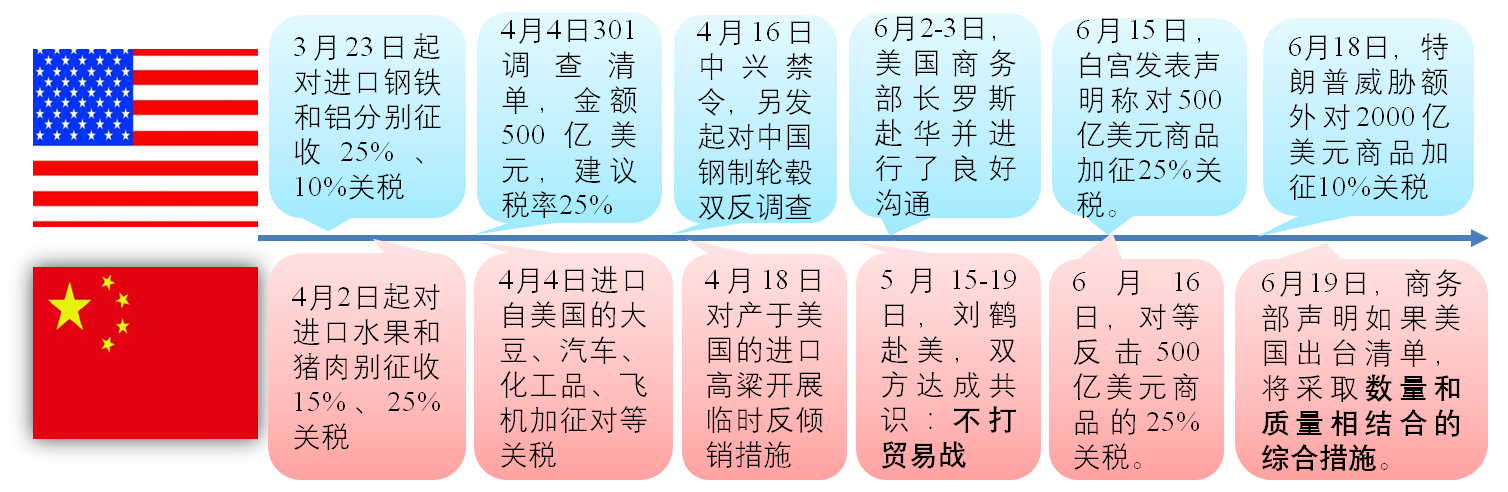 發(fā)稿時間:2018-06-22經(jīng)過多次談判,美國無視國家信譽正式開打貿(mào)易戰(zhàn)。自7月6日起雙方將對進口自對方的的500億美元商品加征25%的關(guān)稅。6月18日特朗普威脅加征2000億美元商品10%關(guān)稅,6月19日中方強硬反擊,當(dāng)天全球股指暴跌。