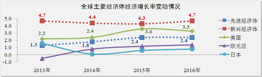 國際貨幣基金組織(IMF)在2015年全球經濟發展展望預測報告中指出,目前全球經濟呈現出四個趨勢:一是石油價格自去年9月份以來下跌近55%;二是全球經濟增長基本符合預期,但主要經濟體增長情況存在顯著差異;三是美元退出QE后幣值上升近6%;四是新興經濟體的利率及風險利差逐步上升。IMF預計2015-2016年全球經濟增長率分別為3.5%和3.7%。相比2014年10月期《世界經濟展望》的預測,IMF對全球經濟增長率下調了0.3個百分點。之所以做出這種調整,是因為對中國、俄羅斯、歐元區和日本經濟前景做出了重新評估。應引起注意的是,美國是唯一增長預測上調的主要經濟體。