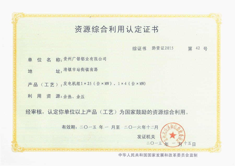資源綜合利用證書是國家鼓勵企業開展資源綜合利用、促進經濟社會可持續發展的重要舉措。該項證書的取得很大程度上的降低了我司的生產成本,能更大限度地利用現有資源,有力地推進氧化鋁生產加工作業。其中,我司配套建設的1×25MW、1×4MW兩臺背壓發電機組年可發電近4000萬度,按照國家相關規定,取得資源綜合利用認定證書的企業,可減免該項資源稅務,每年能為公司節約部分發電成本。