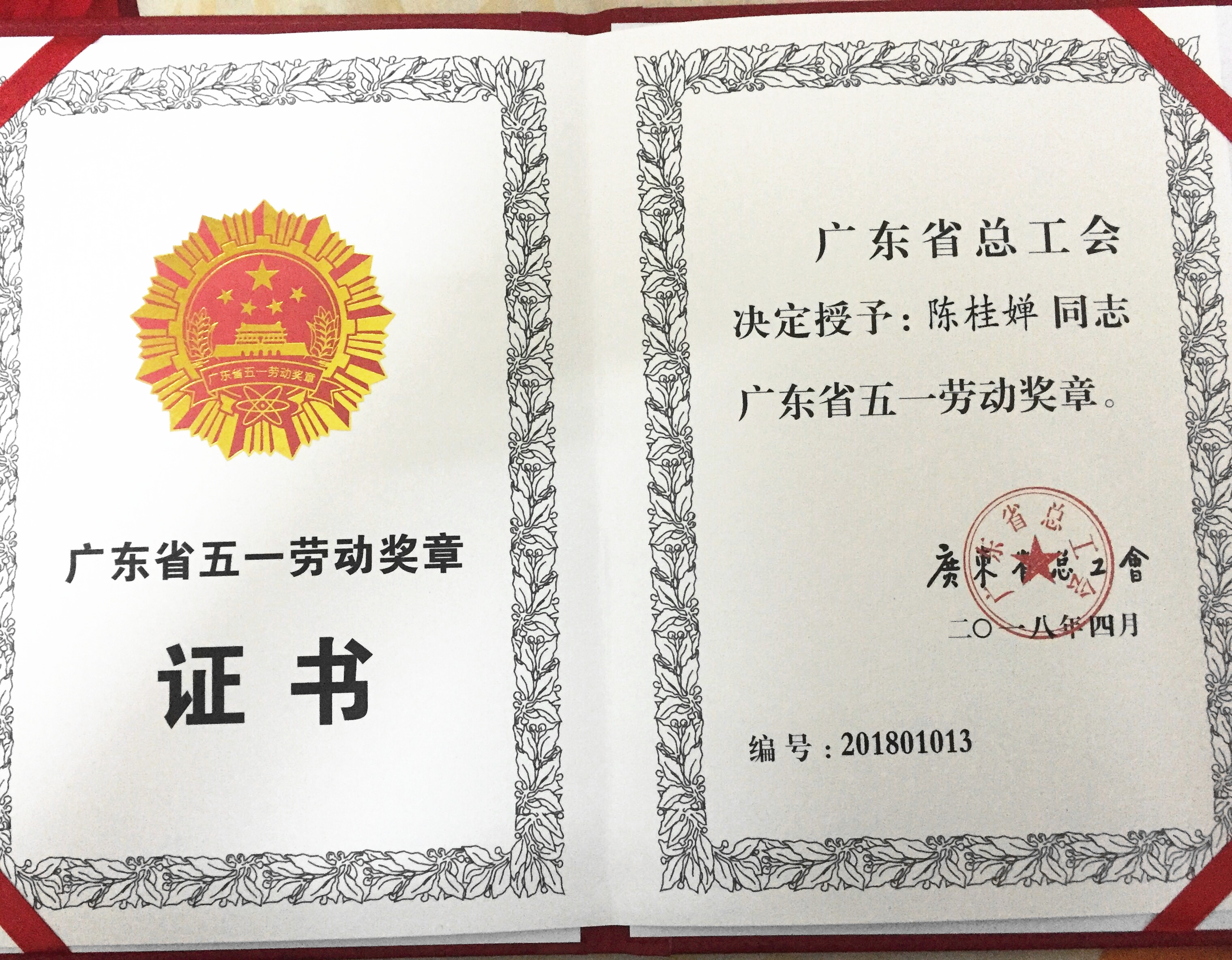 喜訊:陳桂嬋榮獲2018年“廣東省五一勞動獎章”