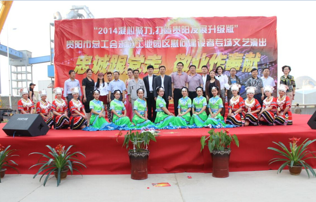 2014年4月18日下午15:00時,貴陽市總工會“忠誠跟黨走 敬業(yè)做奉獻”走進工業(yè)園區(qū)慰問建設者專場文藝演出在貴州公司如期舉行。貴陽市總工會黨委副書記嚴貴均、副主席趙凱、清鎮(zhèn)市園區(qū)黨政工作部部長龍禮超等領導應邀觀看了演出,海螺水泥、西南水泥等園區(qū)主要企業(yè)相關人員也到場觀看了演出。